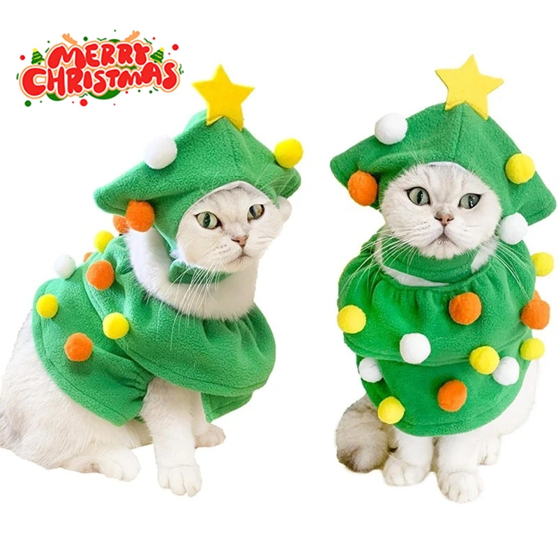 ✩Adjustable Size: Very convenient to wear, Christmas Tree Pet Costume is suitable for cats and dogs with a neck circumference of about 14~26CM, designed with an adjustable elastic at the neck.